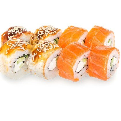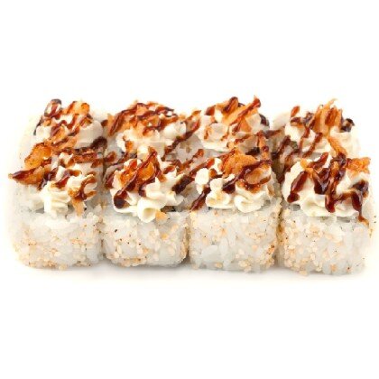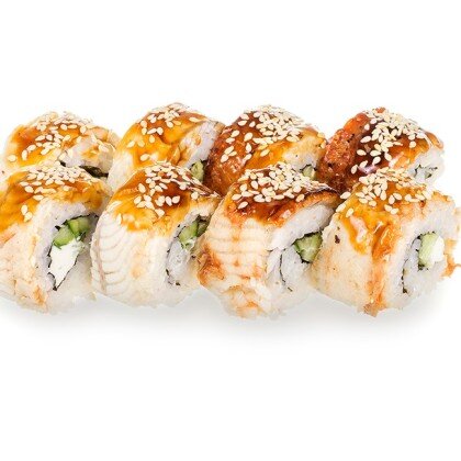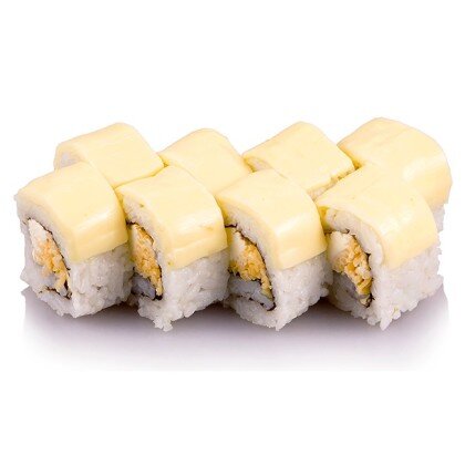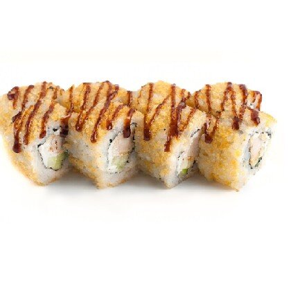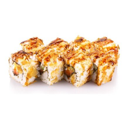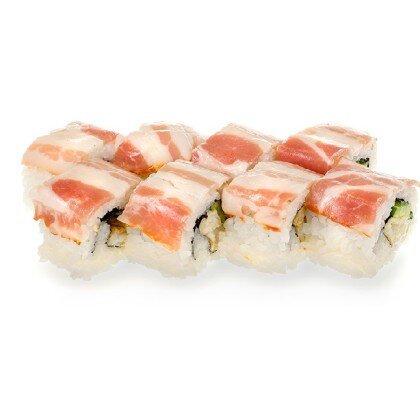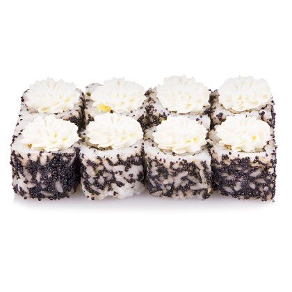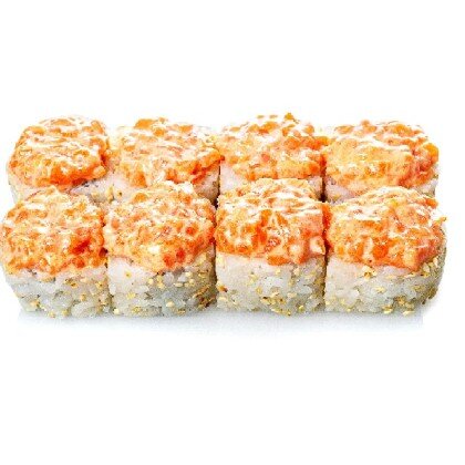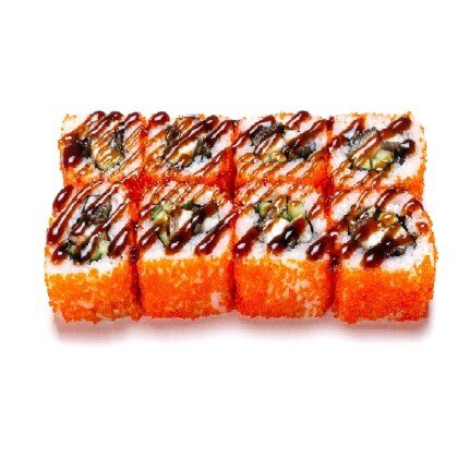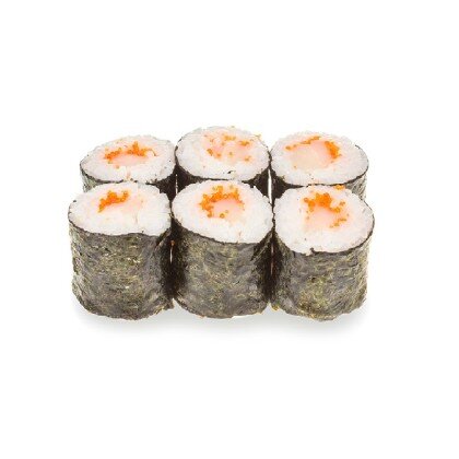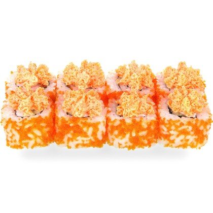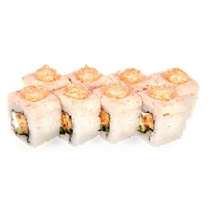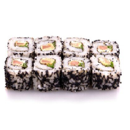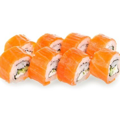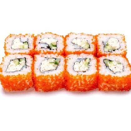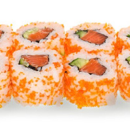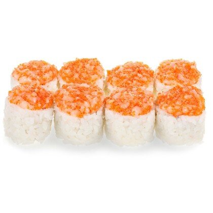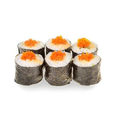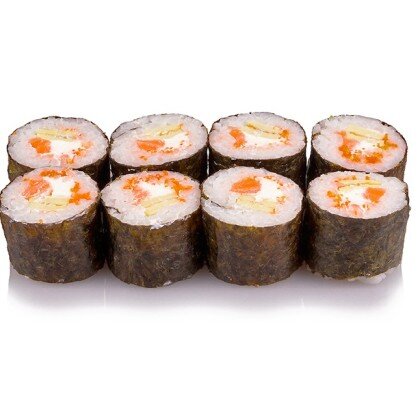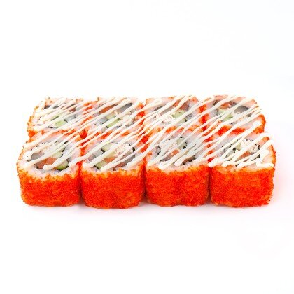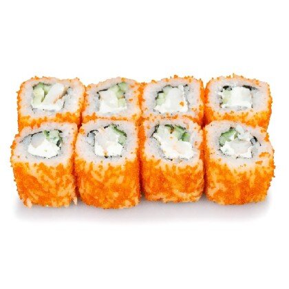 Нежнейший ролл с лососем, творожным сыром и огурчиком. Ролл окутан икрой летучей рыбы 210 г 8 шт.