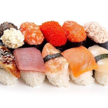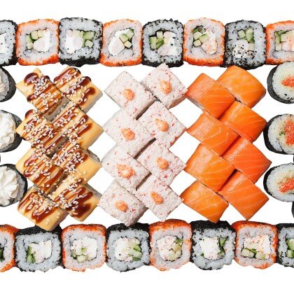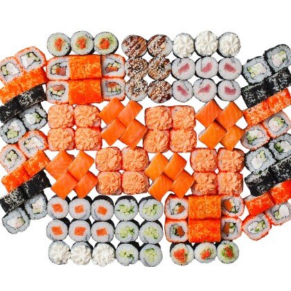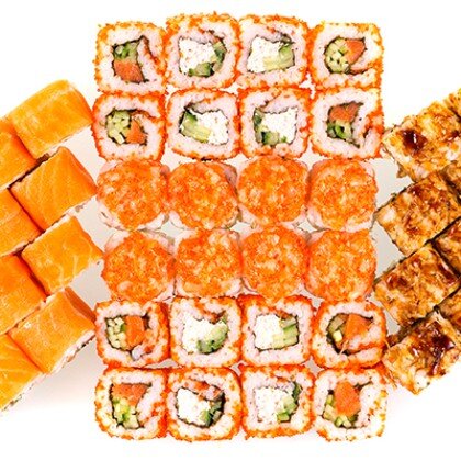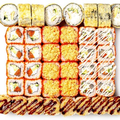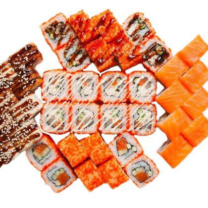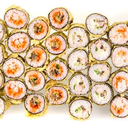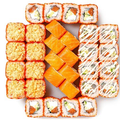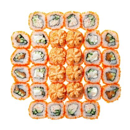 Филадельфия МИКС, Калифорния с креветкой, Шиитаке с жареным луком ролл, Канада, Тунис с курицей роллы. (фото может отличаться)) 40 шт.