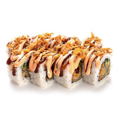 Гребешок фри и творожный сыр. Ролл окутан чёрной икрой масаго 195 г 8 шт.