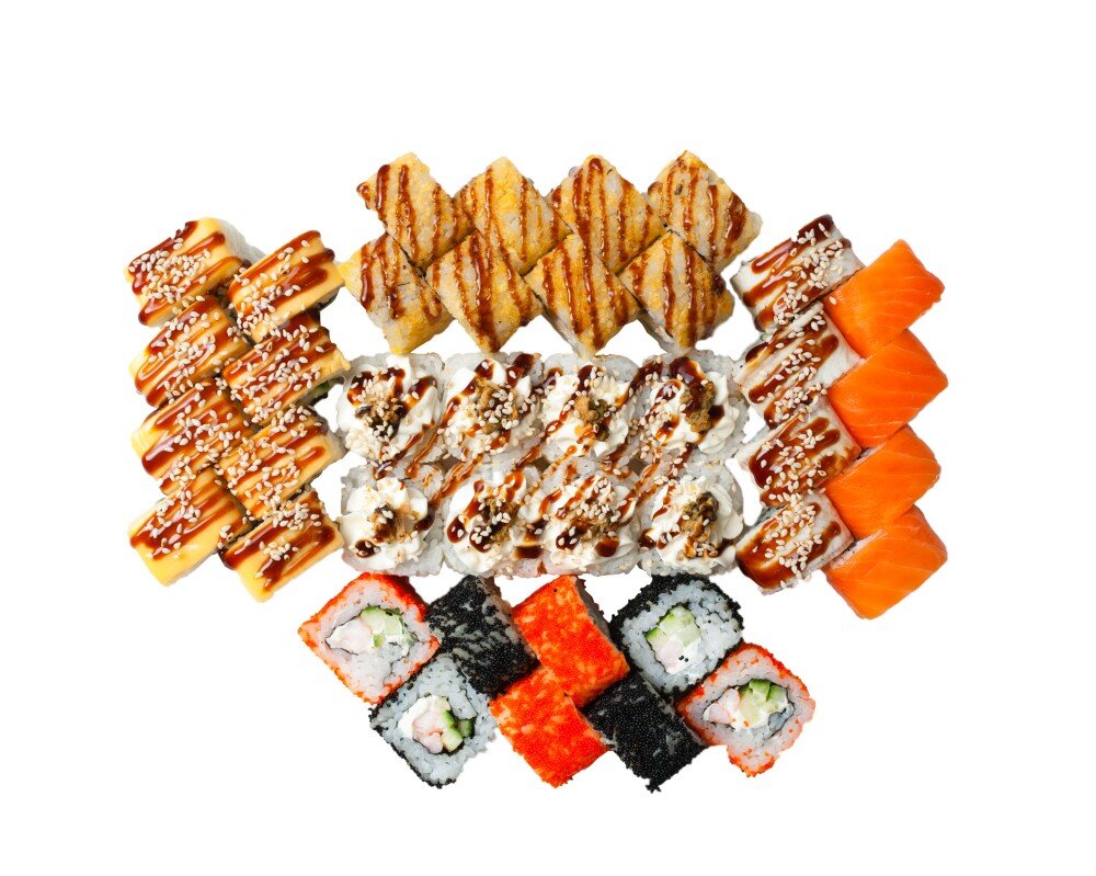 Филадельфия МИКС, Калифорния с креветкой, Шиитаке с жареным луком ролл, Канада, Тунис с курицей роллы. (фото может отличаться)) 40 шт.