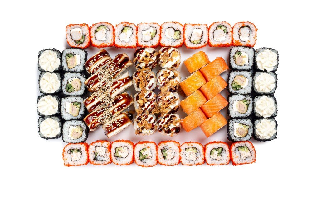 Филадельфия оригинал, Филадельфия угорь, Калифорния с креветкой, Калифорния крем краб, Шиитаке с жареным луком, Честер с гребешком, Честер с тунцом