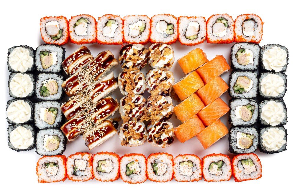 Филадельфия оригинал, Филадельфия угорь, Калифорния с креветкой, Калифорния крем краб, Ролл с жареным луком, Честер с гребешком, Честер с тунцом роллы